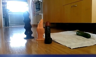 Using veggies to fuck her holes leaves her widely opened wide