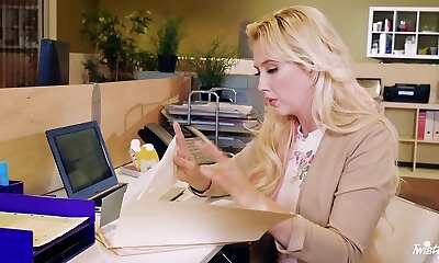 Secretary in stockings sates her boss in the office...
